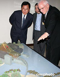 臺(tái)北“故宮博物院”將投入數(shù)十億元新臺(tái)幣在嘉義縣建分院。在公開競(jìng)逐中,來自美國(guó)的著名建筑師Antoine Predock最終勝出。圖為十一月二十四日,Antoine Predock(右)介紹他所設(shè)計(jì)的“故宮分院”。中新社記者:董會(huì)峰