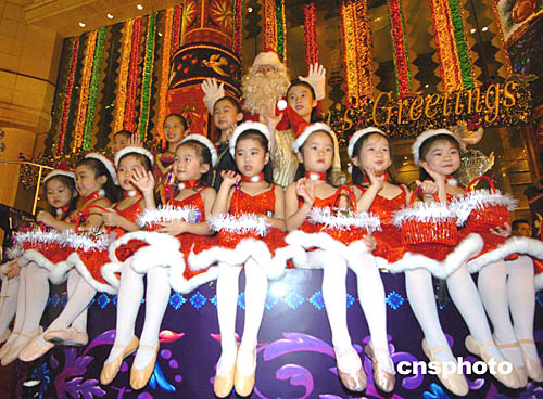 香港時(shí)代廣場(chǎng)2004圣誕月24日晚拉開(kāi)序幕﹐今年的圣誕節(jié)裝飾以《閃爍時(shí)代夢(mèng)幻曲》為主題。中新社記者:趙振清