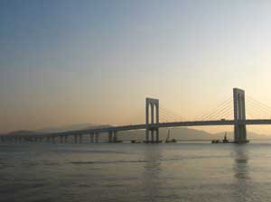 澳門(mén)特區(qū)政府于二○○二年八月初決定把設(shè)計(jì)及建造第三大橋的承攬工程判給由國(guó)家著名建橋企業(yè)組成的“中鐵———大橋聯(lián)合體”,造價(jià)為五億六千多萬(wàn)元,大橋的設(shè)計(jì)及建造要求在28個(gè)月內(nèi)完成。由于工程進(jìn)展順利,大橋提前兩個(gè)月竣工。