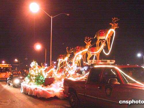當(dāng)?shù)貢r(shí)間十一月二十七日晚,加拿大一年一度的“圣誕燈光大游行”在首都渥太華市舉行。數(shù)萬民眾冒著凜烈的寒風(fēng)沿街觀看,近百輛彩燈裝飾的彩車行進(jìn)在“圣誕快樂!”的歡呼聲中。作者:蒲力