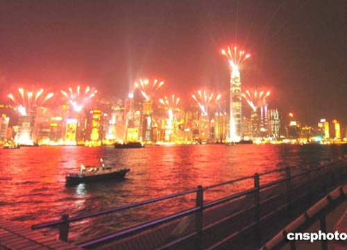 為迎接圣誕節(jié)的到來﹐周日的香港島主要建筑物在晚間20時(shí)燃放煙花﹐使得維多利亞港灣呈現(xiàn)一派節(jié)日景象。