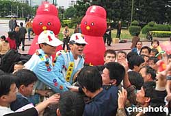 福建省衛(wèi)生廳防艾工作委員會(huì)與福建省、福州市近十家有關(guān)醫(yī)療機(jī)構(gòu),聯(lián)合在福州開展大型“防治艾滋病” 宣傳活動(dòng)。圖為福州市民在宣傳活動(dòng)上爭(zhēng)領(lǐng)免費(fèi)安全套。作者:劉可耕
