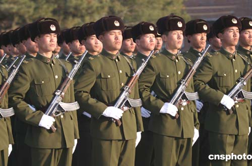 十二月一日,經中央軍委批準,中國全軍部隊士兵和部分軍校學員開始統一換發(fā)用仿毛面料制成的零四式士兵冬常服。明年五月,士兵將換發(fā)用同一材料制成的新式夏常服。作者:王利軍