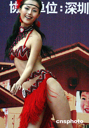 參加第十七屆世界模特小姐大賽中國賽區(qū)總決賽的選手,十月五日在深圳舉行大賽巡游時(shí)裝秀,圖為參賽佳麗表演熱情奔放的拉丁舞。中新社記者:錢興強(qiáng)