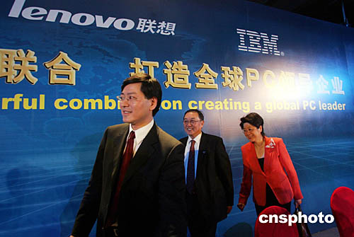 二零零四年十二月八日,聯(lián)想集團(tuán)正式收購(gòu)IBM全球PC業(yè)務(wù)后,原CEO楊元慶接任董事長(zhǎng),老帥柳傳志則將徹底從聯(lián)想集團(tuán)退隱幕后。圖為二人在當(dāng)日舉行的聯(lián)想集團(tuán)收購(gòu)IBM全球PC業(yè)務(wù)簽約儀式后共同答記者問(wèn)。