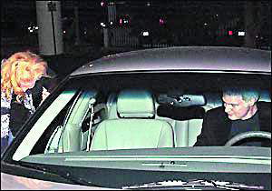 當晚,身著藍色毛衣和黑色休閑外套的史蒂夫用他的林肯轎車載著迷人的妮可前往他的錄音棚,車子一到達,妮可就迫不及待地鉆進去。妮可系著一條花絲巾,穿著一件黑色西服上衣,下車前,妮可不忘左張右望,看了又看。發(fā)現(xiàn)有人拍照時,機警地低下頭并用手遮臉,但神情并不慌張,臉上倒掛著甜蜜的笑。一路上兩人談談笑笑,廝守3個小時后,史蒂夫才送妮可回家,兩人牽手下車,朝妮可家中走去。