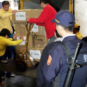 最大票倉的臺北縣270萬張“立委”選票,9日在嚴密警力的戒護下拆封,分別送交29鄉(xiāng)鎮(zhèn)市選務作業(yè)中心保管及分裝;將在11日提供選民投票使用。(臺灣媒體圖)