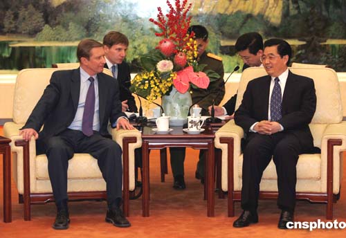 胡錦濤表示,當(dāng)前,中俄兩國都面臨著維護和平穩(wěn)定,促進共同發(fā)展的任務(wù)。進一步深化兩國的戰(zhàn)略協(xié)作,加強兩國兩軍在雙邊和上海合作組織等多邊框架內(nèi)的協(xié)調(diào)與合作,共同打擊威脅各國及地區(qū)安全的恐怖主義等惡勢力,符合本地區(qū)各國人民的根本利益。希望雙方共同努力,進一步落實好《<中俄睦鄰友好合作條約>實施綱要》等一系列雙邊合作文件,推動兩國戰(zhàn)略協(xié)作伙伴關(guān)系不斷向前發(fā)展,為維護和促進地區(qū)及世界的和平、穩(wěn)定與發(fā)展作出新貢獻。