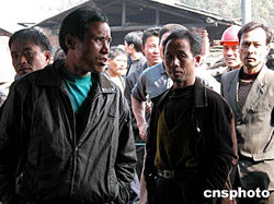 圖為礦工在井口焦急等待被困礦友的消息。