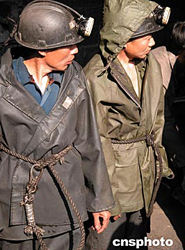湖南譚家山礦難搜救正在緊張進(jìn)行,兩名救援礦工在等待下井。作者:劉晶