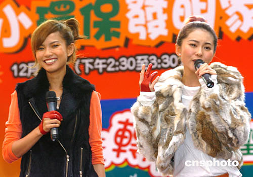 香港流行音樂組合2R19日在香港馬鞍山中心舉行的迎接圣誕活動上獻歌。中新社記者:趙振清