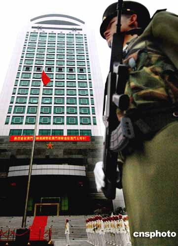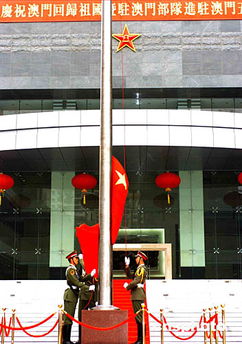 解放軍駐澳門部隊(duì)20日上午莊嚴(yán)舉行升旗儀式,慶祝澳門回歸祖國五周年。作者:宋吉河