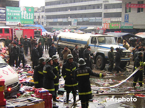 二十一日清晨七點(diǎn)半左右,湖南常德市橋南市場(chǎng)橋南賓館旁一商鋪突發(fā)大火,火勢(shì)借助風(fēng)勢(shì)迅速向市場(chǎng)西北蔓延,過火面積近二萬平方米。據(jù)悉,橋南市場(chǎng)是個(gè)多層封閉式的集貿(mào)市場(chǎng),建于一九九二年,有“湘西北第一市場(chǎng)”之稱。