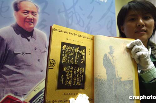 十二月二十六日是偉人毛澤東誕辰一百一十一周年紀(jì)念日。純金澆鑄珍藏冊(cè)《偉人毛澤東書法寶典》首發(fā)式今天在毛主席紀(jì)念堂舉行。