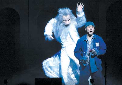 陳:它有那么多歌,跟音樂有很大的關(guān)系,對白也不是太多,都是用歌來交代情節(jié),它也不是音樂會,因為它是有劇情的,我覺得它就是音樂劇。我們不要全學(xué)國外,因為我們希望有雅俗共賞的音樂劇,讓一般觀眾不容易理解的不是我們心目中的理想。如果有人覺得這個不是音樂劇,他們可以自己做一個自己理想中的音樂劇,我們也會去看看有什么值得我們學(xué)習(xí)的。我們這個只是一個開始,我希望以后有更多不同類型的音樂劇來演。像我們這樣的,1997年時還是第一次做,之所以說創(chuàng)意音樂劇,就是沒有一個先例,自己比較寬松,想做什么就做什么,最重要的是觀眾覺得我們有誠意。
