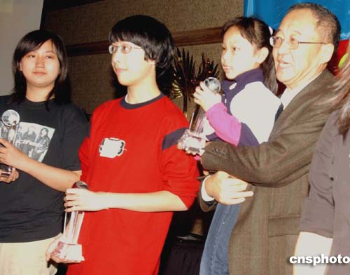 劉澤彭出席全美華裔青少年繪畫(huà)大賽頒獎(jiǎng)儀式。劉澤彭抱起一名美裔華人小姑娘為她頒獎(jiǎng)。作者:賈國(guó)榮