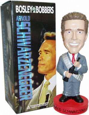 現(xiàn)任美國加州州長施瓦辛格的電影公司日前起訴一家玩具制造公司,在未經(jīng)授權(quán)的情況下使用施瓦辛格的畫像和圖片,侵犯了他的肖像權(quán)。圖為施瓦辛格“玩偶”。