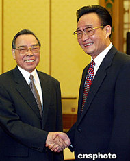 中新社北京五月二十一日電 (記者 朱大強)中國全國人大常委會委員長吳邦國和全國政協(xié)主席賈慶林今天在此間分別會見了越南總理潘文凱。他們指出,雙方要共同珍惜和精心維護友好關(guān)系,妥善處理存在的問題。
