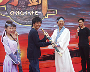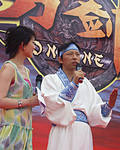 在象征著中國龍的居庸關長城腳下,上千位手持搜狐“群英帖”的嘉賓匯集一堂,儼然一場名副其實的江湖群英會!兜秳nline》發(fā)布會以氣勢恢弘的舞龍開場,代表著《刀劍Online》將在群雄逐鹿的網(wǎng)游市場,以原汁原味的中國功夫開篇中國人自己的網(wǎng)游傳奇!八押崎T人”張朝陽一身古代俠士裝扮出場,一番刀劍揮舞,顯示了不凡的武功造詣。而作為此款網(wǎng)游主題音樂代言人的內地著名歌手孫楠則以一曲曲風高揚,極具武俠風格的《刀劍》將發(fā)布會氣氛推向高潮。