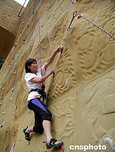 二零零四中國廣東懷集國際攀巖邀請賽六月六日下午在廣東懷集“國家攀巖訓(xùn)練基地”降下帷幕。圖為中國選手在比賽中。作者:黃耀輝