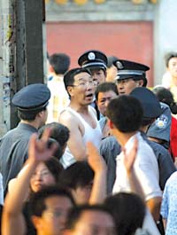 昨天16時(shí)50分,離演出開(kāi)始還有10分鐘,地壇方澤壇內(nèi)就涌入了數(shù)百名搖滾樂(lè)迷。17時(shí),主辦方突然抱歉地向觀(guān)眾解釋?zhuān)瑸榱瞬挥绊懜呖迹莩鲅舆t30分鐘舉行。20多分鐘后,在焦急地等待中,這場(chǎng)公益“搖滾大餐”終于開(kāi)場(chǎng)。包著紫白相間頭巾、戴著墨鏡的瘦人樂(lè)隊(duì)主唱戴秦一亮相,就引來(lái)臺(tái)下觀(guān)眾一陣陣夾雜著尖叫和口哨聲的熱烈吶喊。戴秦一口氣唱了兩首勁歌,精彩紛呈的表演和震耳欲聾的音樂(lè)讓臺(tái)下的歌迷叫得聲嘶力竭。