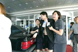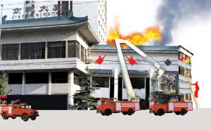 10分鐘后,鄒琴聽(tīng)到走廊上有人喊:“浴池裝修時(shí)著火了!”她才發(fā)現(xiàn)房間已經(jīng)黑下來(lái)。鄒琴打開(kāi)門(mén),一股濃煙立刻躥進(jìn)來(lái):“聞到煙后好像喝了辣椒湯!编u琴說(shuō)。她們將門(mén)緊緊拴上,等人來(lái)救。室內(nèi)溫度在急劇升高。就在三人快絕望時(shí),一股水柱從窗戶噴進(jìn)來(lái)。