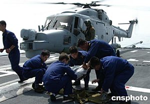 北海艦隊(duì)“哈爾濱”號(hào)導(dǎo)彈驅(qū)逐艦、“洪澤湖”號(hào)綜合補(bǔ)給艦、“海豚”艦載直升機(jī)和英國皇家海軍“?巳亍碧(hào)導(dǎo)彈驅(qū)逐艦、“山貓”艦載直升機(jī)參加此次非傳統(tǒng)安全領(lǐng)域的聯(lián)合演習(xí)。