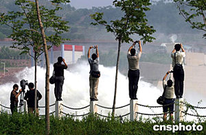 6月20日6時06分,從小浪底下泄的水頭到達花園口水文站,相應(yīng)流量每秒1850立方米。到11時,流量陡增至每秒2580立方米,這是洪水起漲后達到的最大流量。“人造洪峰”通過花園口的流量,對調(diào)水調(diào)沙試驗的調(diào)度起著關(guān)鍵作用。