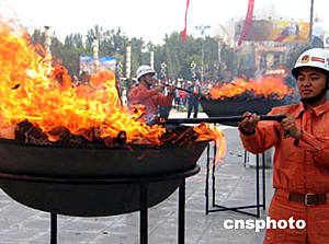 中新網(wǎng)6月26日電 今天是國(guó)際禁毒日,聯(lián)合國(guó)毒品監(jiān)督機(jī)構(gòu)去年3月公布的一份年度報(bào)告指出,目前全球經(jīng)常性和偶爾性的毒品使用者已達(dá)兩億之多;其中1.63億人吸食大麻,3400萬(wàn)人食用安非它明,1400萬(wàn)人食用可卡因,1500萬(wàn)人服用鴉片制劑,800萬(wàn)人食用搖頭丸。全球毒品每年銷售總額8000億至1萬(wàn)億美元,占全球貿(mào)易總額的10%,這一數(shù)字高于石油和天然氣工業(yè)的收入,與全球軍火貿(mào)易額相差無(wú)幾。
