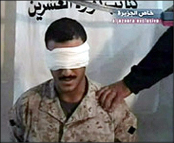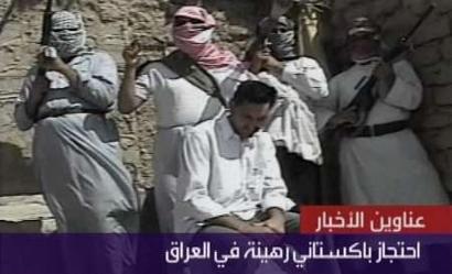 就在這份錄像被播放之前,半島電視臺(tái)還播放了另一份來自伊拉克身份不明的槍手的錄像帶,內(nèi)容是威脅要砍掉一名巴基斯坦人質(zhì)的頭,除非美軍釋放伊拉克囚犯。