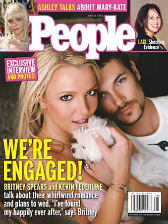 凱文費德藍恩對”人物”雜志表示,他認為求婚應(yīng)該是男方開口才對,他拒絕布蘭妮求婚要求的幾分鐘之后,便換成他詢問布蘭妮”是否愿意嫁給我”,布蘭妮馬上就答應(yīng)了。