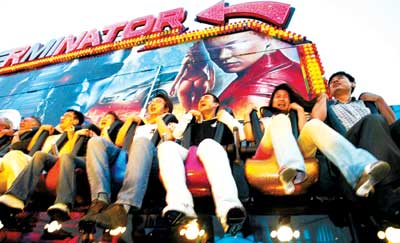 剛到晚上7點(diǎn),“北京環(huán)球嘉年華”現(xiàn)場(chǎng)已是霓虹燈閃爍,尖叫聲不斷。由于很多市民事先知道了昨天正式營(yíng)業(yè)的消息,從四面八方如潮水般涌向玉泉路。