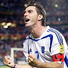 中新網(wǎng)7月6日電 2004年歐錦賽隨著希臘隊的奪冠而圓滿結(jié)束。賽后,希臘隊隊長、中場球員扎戈拉基斯被評選為本屆比賽的最佳球員。