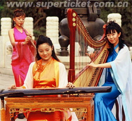 瑟:中國(guó)原始的絲弦樂(lè)器之一,共有二十五根弦。《詩(shī)經(jīng)》中有記載"窈窕淑女,琴瑟友之","我有嘉賓,鼓瑟鼓琴"。瑟曾銷聲匿跡千年之久,而今“幽蘭漢樂(lè)”將傳說(shuō)中的聲音再次呈現(xiàn)于舞臺(tái)之上,琴瑟合鳴,樂(lè)聲如流水,如鳳鳴,如南風(fēng),如月行,引我們走進(jìn)大自然深深的芬芳里。箜篌:中國(guó)古老的彈弦樂(lè)器,始于漢代,歷史悠久;音域?qū)拸V、音色柔美清澈,表現(xiàn)力強(qiáng)。唐時(shí)期曾用于西涼、龜茲、疏勒、高麗、天竺諸樂(lè)中。明代后失傳達(dá)300年之久。