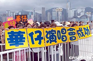 歌影紅星劉德華7月8日在香港尖沙咀星光大道舉行《道地百果園劉德華Vision Tour演唱會(huì)2004》記者會(huì),大批“華仔”歌迷帶備標(biāo)語(yǔ)到場(chǎng)支持,為偶像打氣。作者:鄧慶樂
