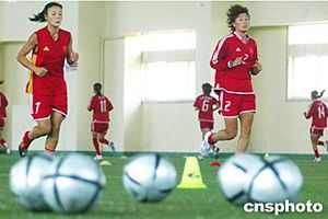 七月十四日,中國(guó)女足的姑娘們?cè)谏虾|方綠洲訓(xùn)練基地積極備戰(zhàn),為即將到來(lái)的雅典奧運(yùn)會(huì)做最后的沖刺。作者:湯彥俊