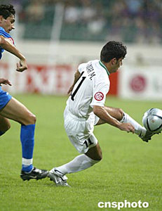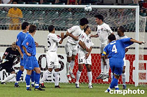 亞洲杯C組比賽七月十八日在成都開戰(zhàn),以國奧隊為主的青年軍伊拉克隊(白)迎戰(zhàn)中亞強(qiáng)隊烏茲別克斯坦隊。中新社記者:任晨鳴