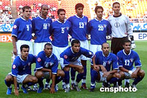 二○○四年七月二十三日,亞洲杯B組比賽在濟南山東省體育中心重燃戰(zhàn)火,由業(yè)余球員組成的約旦隊迎戰(zhàn)目前小組排名第一的科威特隊。圖為科威特隊首發(fā)陣容。中新社記者:武仲林