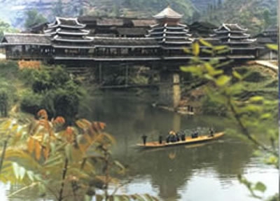 據(jù)新華社報道,距黎平縣108公里的地坪風(fēng)雨橋又稱花橋,是貴州境內(nèi)規(guī)模最大的一座侗族風(fēng)雨橋。這座風(fēng)雨橋始建于清光緒九年(1883年),迄今已有100多年的歷史。橋廊上建有3座橋樓,不用一釘一鉚,工藝精湛,是侗族建筑的杰出代表,2001年被列為國家級重點文物保護(hù)單位。
