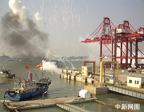 中新網(wǎng)漳州7月25日電 (記者 林國(guó)瑞)七月二十四日下午三時(shí)至四時(shí)三十分,福建省海上支前保障實(shí)兵演習(xí)在漳州港舉行。