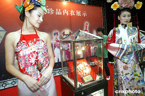 7月27日,大型后現(xiàn)代多媒體舞臺(tái)劇《尋衣記——云縷心衣歐迪芬》在北京舉行新聞發(fā)布會(huì),主創(chuàng)人員及部分演員與媒體見(jiàn)面,更有清代珍品內(nèi)衣展以及身著古裝的模特為新聞發(fā)布會(huì)助興!秾ひ掠洝穼⒂7月30日、31日在北京保利劇院上演。中新社記者:盛佳鵬