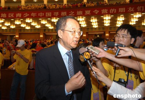 七月二十七日上午,“二零零四年海外華裔及港澳地區(qū)青少年中國尋根之旅夏令營”開營儀式在北京人民大會堂隆重舉行,來自三十六個國家和港澳地區(qū)的近四千名青少年參加了開營式。國務院僑辦副主任劉澤彭在開營式后成為媒體采訪焦點。作者:徐曦弋