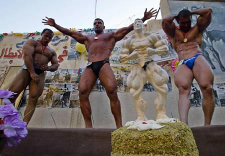 原來(lái),巴格達(dá)有一座以前健美冠軍施瓦辛格名字命名的“阿諾光榮”體育館,這次健美比賽——伊戰(zhàn)后的伊拉克首次全國(guó)健美比賽(男子)——就是在該體育館的一塊露天場(chǎng)地上進(jìn)行的。