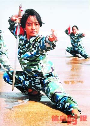 1995年,剛剛成立的中國海軍女子陸戰(zhàn)隊擔(dān)負起了迎接美國海軍陸戰(zhàn)隊司令凱利的任務(wù),那是她們首次亮相于外軍面前。在那次表演中,女子陸戰(zhàn)隊以精湛的技藝、過硬的素質(zhì)、優(yōu)良的作風(fēng)使得來自大洋彼岸的四星上將翹起大拇指連聲稱贊:“中國女兵,OK!”