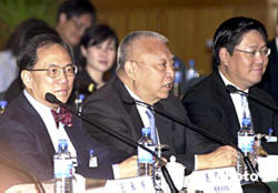中新社廣州八月三日電(記者陳國華)三日下午,香港特首董建華乘直通車抵達(dá)廣州,參加四日在廣州舉行的粵港合作聯(lián)席會議第七次會議。廣東省省長黃華華在董特首下塌的飯店迎接其一行的到來。