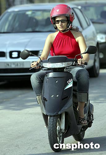 當(dāng)?shù)貢r(shí)間8月5日上午,一輪烈日又將雅典帶入一個(gè)高溫天氣,一名紅裝摩托女郎從汽車大軍中急速駛過。雅典市有不少時(shí)尚男女,熱衷駕駛摩托車。中新社記者:任晨鳴