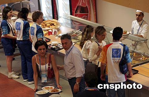在雅典奧運會主新聞中心內(nèi),開設(shè)眾多風(fēng)味的美食供世界各地的記者選擇,只不過都是“西餐”,而沒有中餐等東方風(fēng)味飲食。中新社記者:任晨鳴