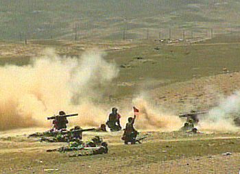 當(dāng)中方偵察隊搜剿至中巴作戰(zhàn)分界線右側(cè),子彈突然從一無名高地附近的山洞內(nèi)飛出,顯然有“恐怖分子”搞偷襲。偵察隊機敏應(yīng)對,采用正面封堵,兩側(cè)迂回方法,步槍、手榴彈并用。只短短幾分鐘,山洞內(nèi)就沒了動靜。在巴方“戰(zhàn)場”,窮兇極惡的“恐怖分子”使出惡毒一招,向攻上來的巴基斯坦部隊投擲化學(xué)手榴彈。巴方部隊迅速采取防護措施,殲滅了頑敵。而藏匿在一山洞內(nèi)的若干“恐怖分子”也暗襲巴軍未果,被打、炸死在洞內(nèi)。中巴武裝力量通過圍剿,奪取了一個又一個高地,消滅了一撥又一撥“恐怖分子”,兩軍也逐步向“恐怖分子”頭目可能藏匿的最后一個高地擠壓搜剿。10余名“恐怖分子”在這個高地上修筑工事,準(zhǔn)備進行垂死掙扎。然而還沒等他們站穩(wěn)腳跟,一輪炮彈就落到了頭上。煙霧中,中方突擊隊和巴方特種分隊從東、西兩翼逼近高地。一時間槍聲大作,“恐怖份子”被全部殲滅。中巴部隊勝利會師,揮舞雙方國旗,歡慶勝利。