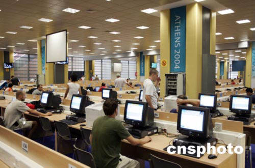 距離奧運會開幕尚有近一個星期,各國記者已趕赴雅典,當?shù)貢r間八月八日,記者們進入雅典奧運會新聞中心開始工作。中新社記者:毛建軍