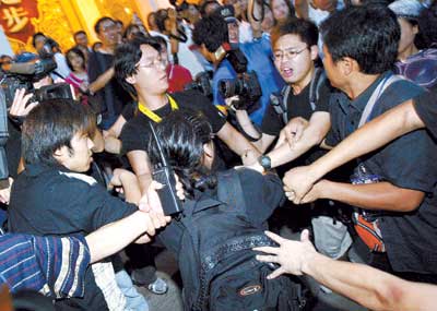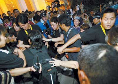 中新網(wǎng)8月9日電 據(jù)信報報道,昨天下午,今年夏天最受矚目的華語大片《千機變2花都大戰(zhàn)》在北京舉行了盛大的全球首映禮。官司纏身的英皇老總楊受成,導(dǎo)演梁柏堅、主演房祖明、TWINS、吳彥祖、甄子丹、范冰冰、瞿穎等均參加了此次盛會,遲到了3個小時的房祖明也因其良好的態(tài)度得到了記者的諒解。原定會出席為兒子助陣的成龍、林鳳嬌夫婦最終沒有出席,只有成龍的父親、房祖明的爺爺來到了現(xiàn)場。跟《十面埋伏》一樣,《千機變2花都大戰(zhàn)》的首映禮也沒放電影。而昨晚在民族宮舉行的慶祝酒會上,香港記者與保安及英皇工作人員發(fā)生沖突,來了場真人版“北京大戰(zhàn)”。